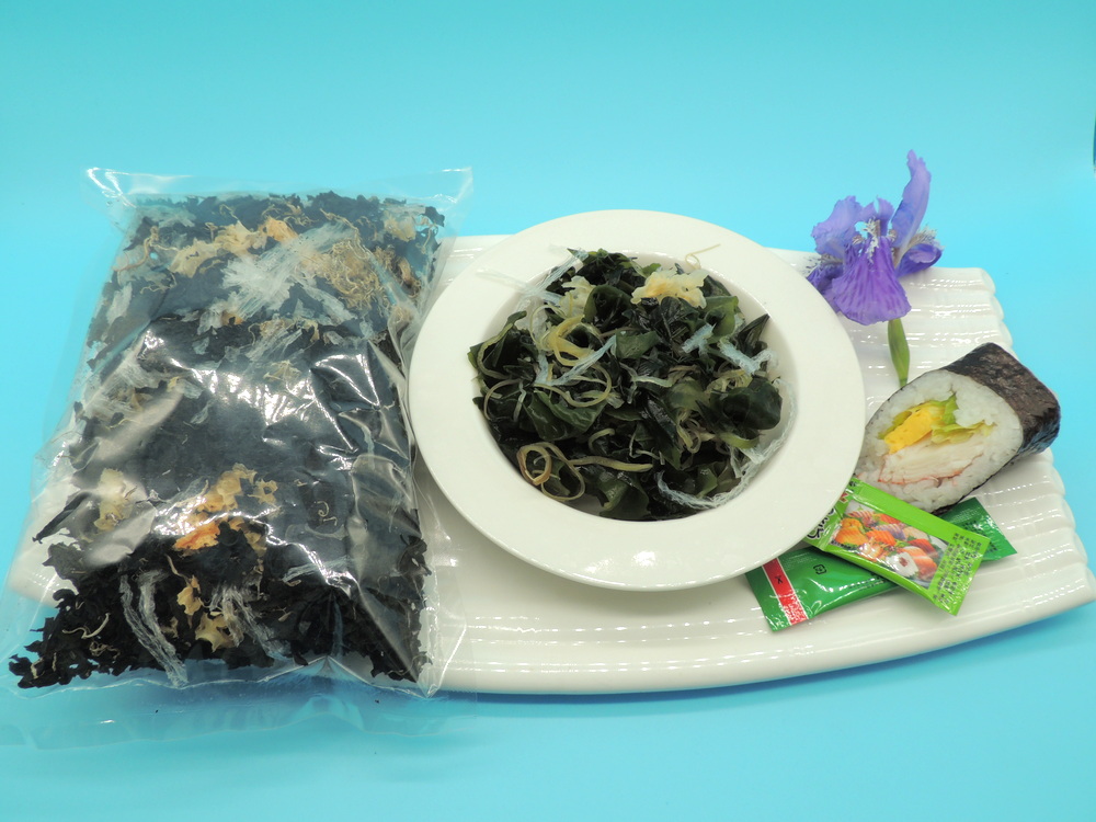 2、食用方法:用凉水或温水浸泡10分钟左右,拌凉菜、做海藻蔬菜沙拉用