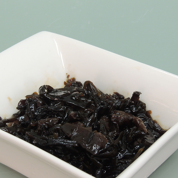 香菇海带,原料使用:香菇、木耳、海带。进行高温蒸煮加工而成。具有日本北海道料理风味