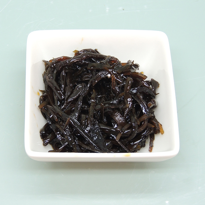 紫苏海带,原料使用:芝麻、木耳、海带。进行高温蒸煮加工而成。具有日本北海道料理风味